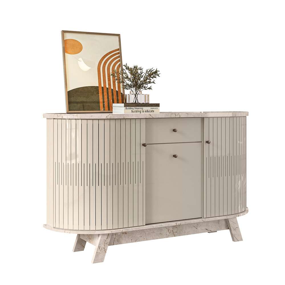 O Buffet Monza traz sofisticação e funcionalidade à sala de estar. O detalhe exclusivo da Madetec é a porta curva em MDF, que garante autenticidade, praticidade e um acabamento sofisticado.