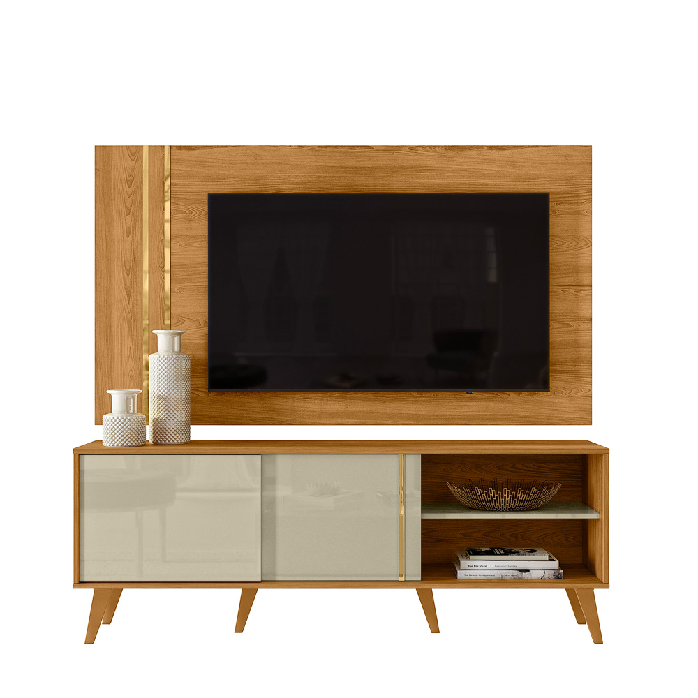 O Combo Cronos une todas essas características sem deixar de lado a funcionalidade. Com 1600mm de largura, ele possui 2 portas de correr, painel e bancada que suportam TV’s de até 60" e chapas de 15mm.