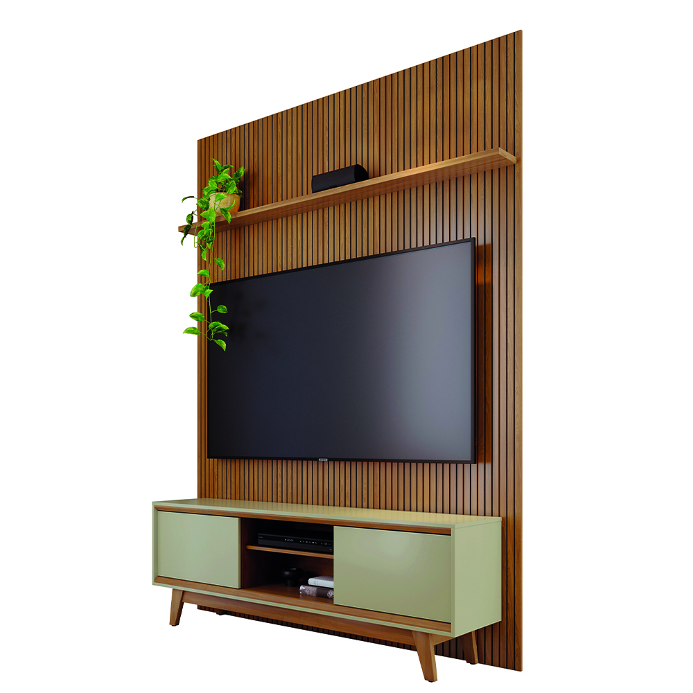 Produzida com chapas de MDP e MDF de 12, 15 e 25mm, a composição une durabilidade e qualidade. Com dimensões de 1790mm de largura, 2445mm de altura e 400mm de profundidade, ela suporta TVs de até 65 polegadas, sendo uma excelente opção para renovar sua sala de estar com estilo.