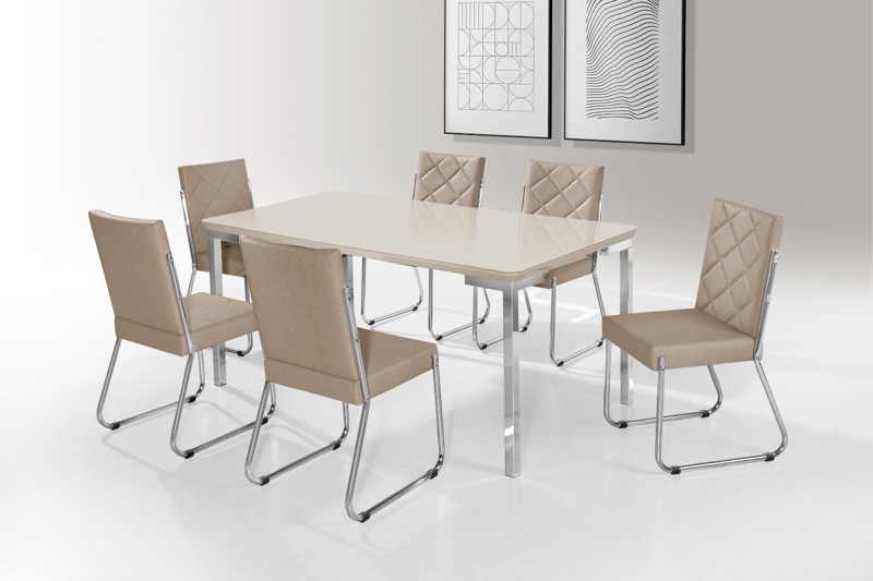 -Mesa Aço Cromado Polido - Tampo 1,60x0,90 em MDF com Vidro de 4 mm colado - Cor (off White)