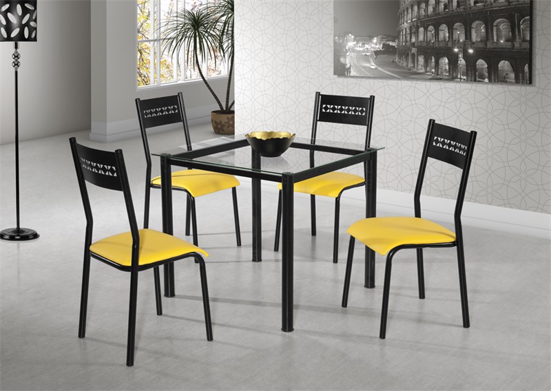 - Pintura Pó Eletrostática Preta Semi Brilho - Tampo 0,80x0,80 - Vidro Incolor sem Tempera 8 mm