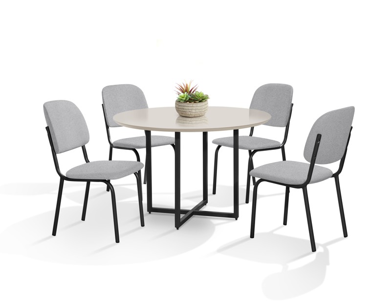 -Cadeira Aço Pintura Pó Eletrostática Black - Micro Textura - Assento e Enconto Tecido Boucle A-517 (Coucle Cinza Claro )