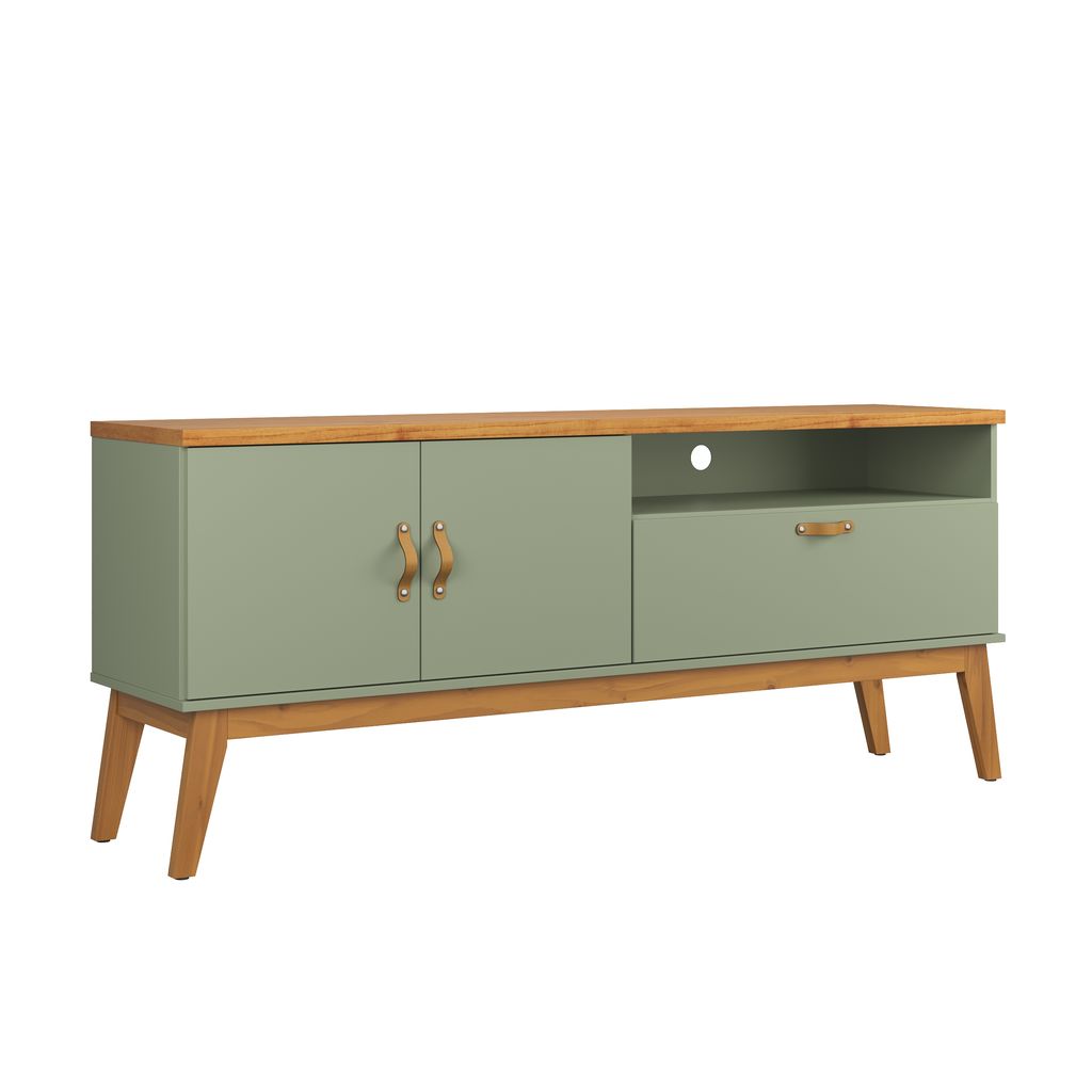 Rack Sirius 1.6 Puxadores de couro Pés em madeira maciça com sapatas protetoras Porta basculante com dobradiças metálicas Versatilidade: pode ser buffet ou aparador